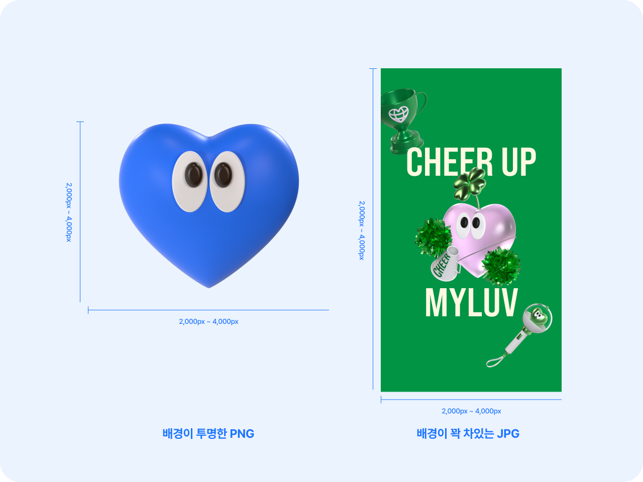 • 모든 이미지의 캔버스 크기는 원본 비율에 맞춰 2,000px ~ 4,000px로 조정해 주세요.