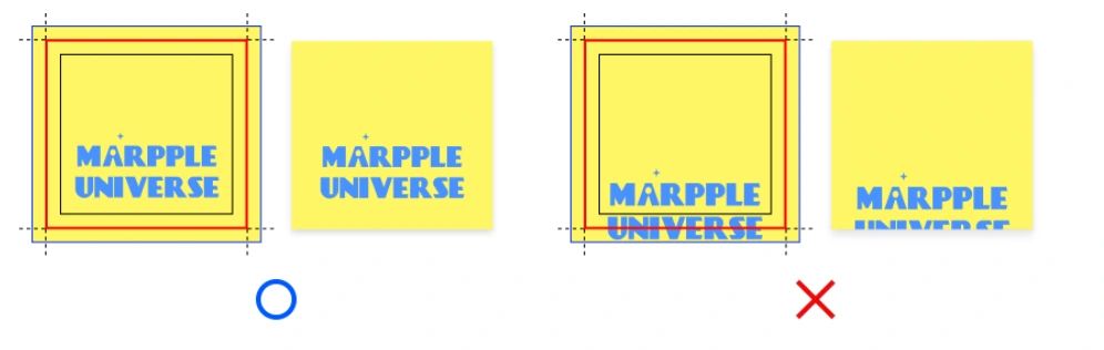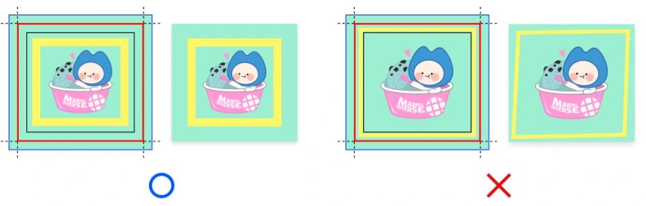 실제 제작/재단되는 상품의 사이즈보다 사방 2mm 이상 안쪽에 중요한 요소를 배치해 주세요.