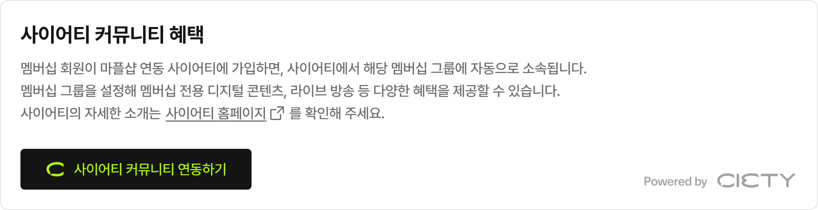 단, 1개 마플샵에는 1개 사이어티 커뮤니티만 연동할 수 있습니다.
