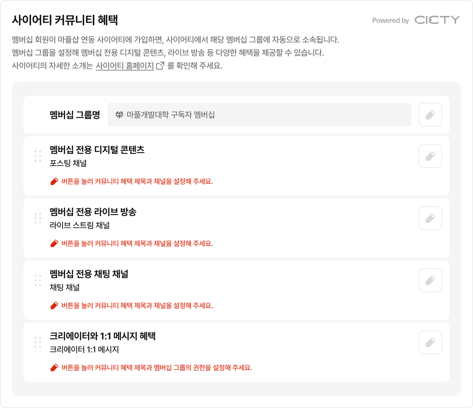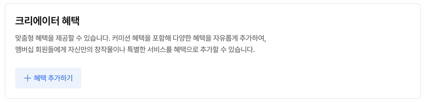 멤버십 회원들에게 크리에이터가 직접 제공할 특별한 혜택을 설정해 보세요.