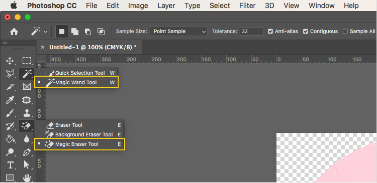 Magic wand 또는 Magic eraser 툴을 사용해 이미지의 배경을 선택 후 지워주세요.