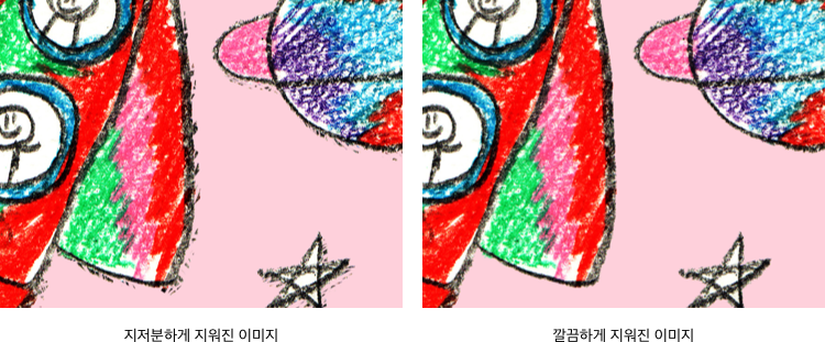 아래 사진과 같이 외곽선이 깔끔하게 지워지지 않을 경우 지저분한 이미지가 그대로 프린트되므로 깨끗하게 지워주세요.
