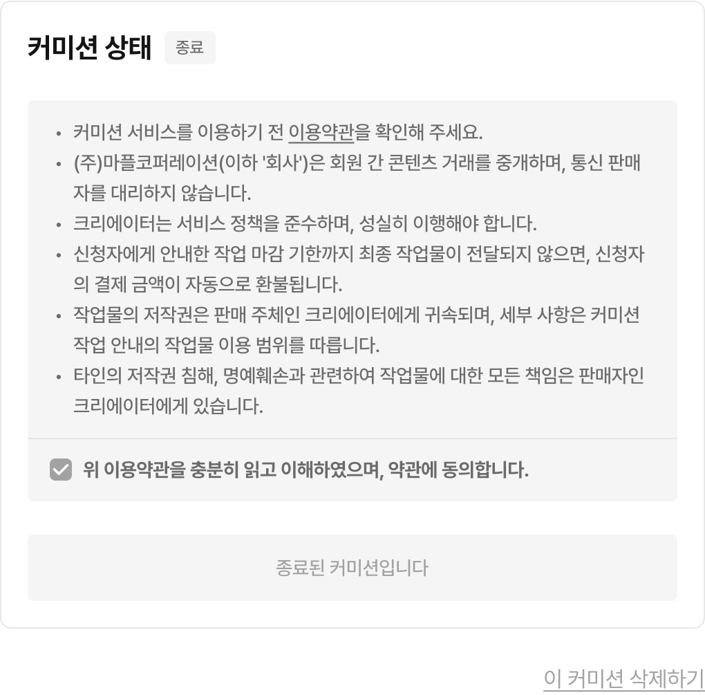 종료된 커미션만 삭제할 수 있습니다.