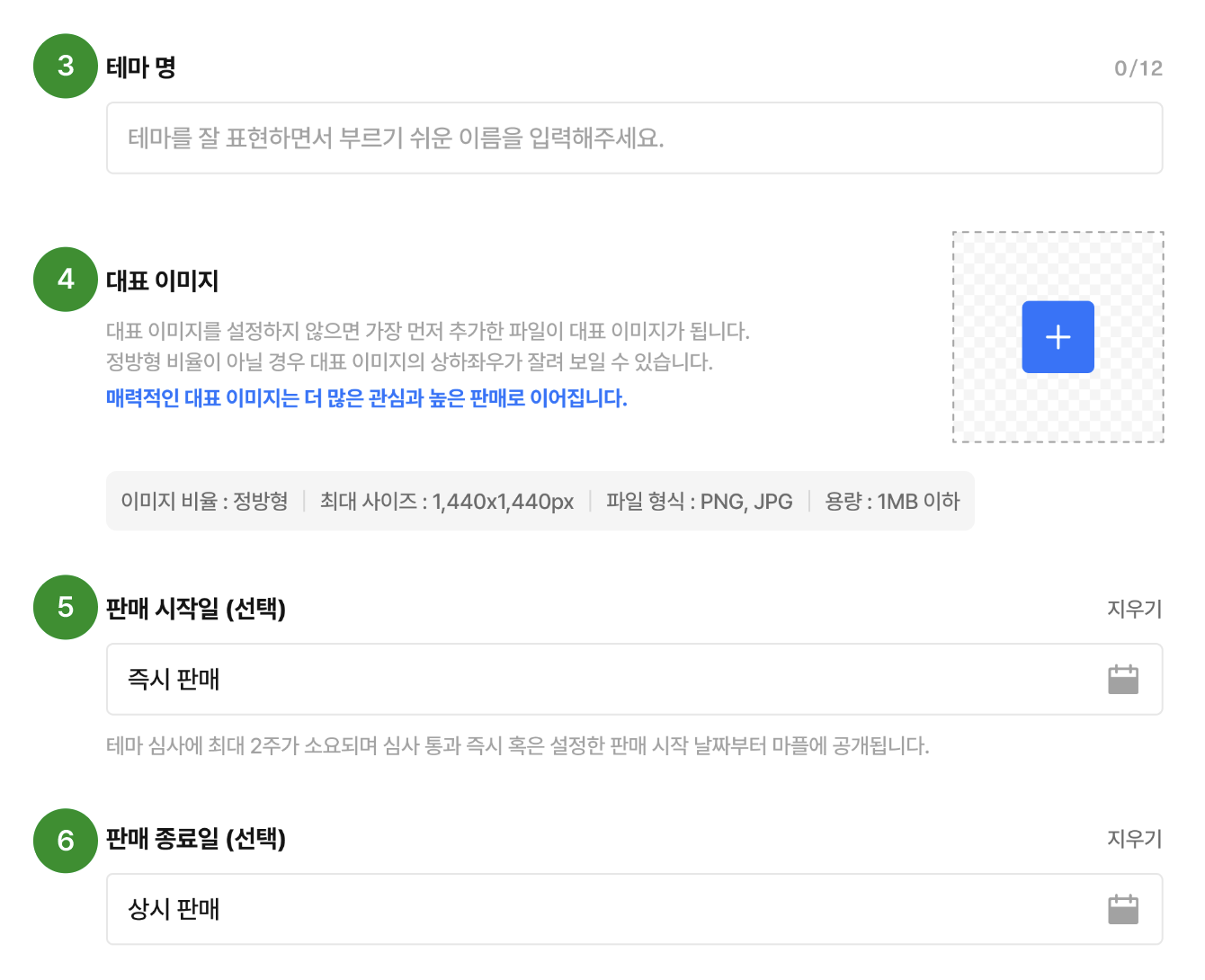 별도로 판매 시작일을 설정하지 않은 경우 판매 심사 완료 후 즉시 판매가 시작됩니다.